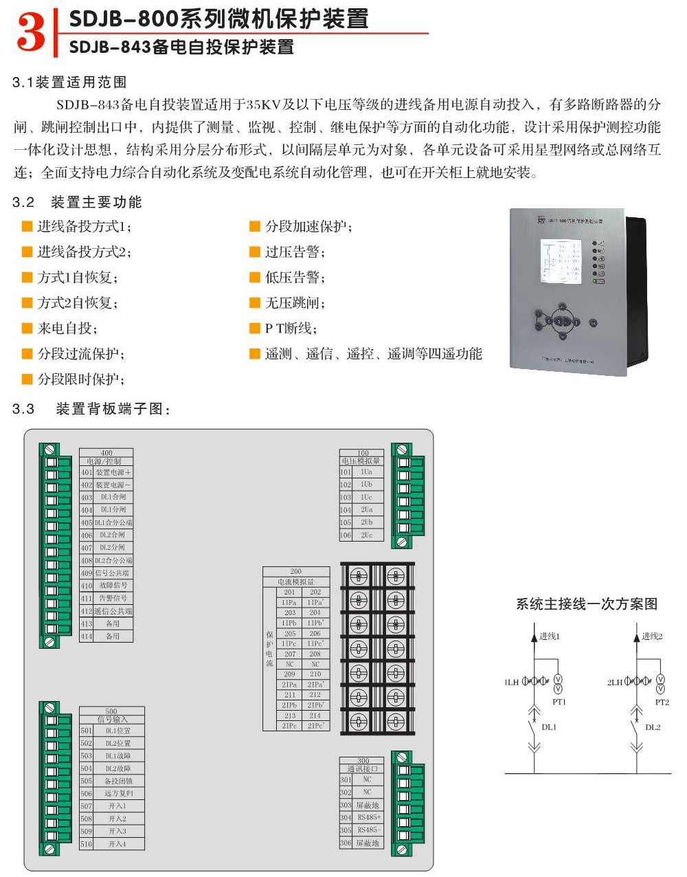 SDJB-843備電自投保護裝置